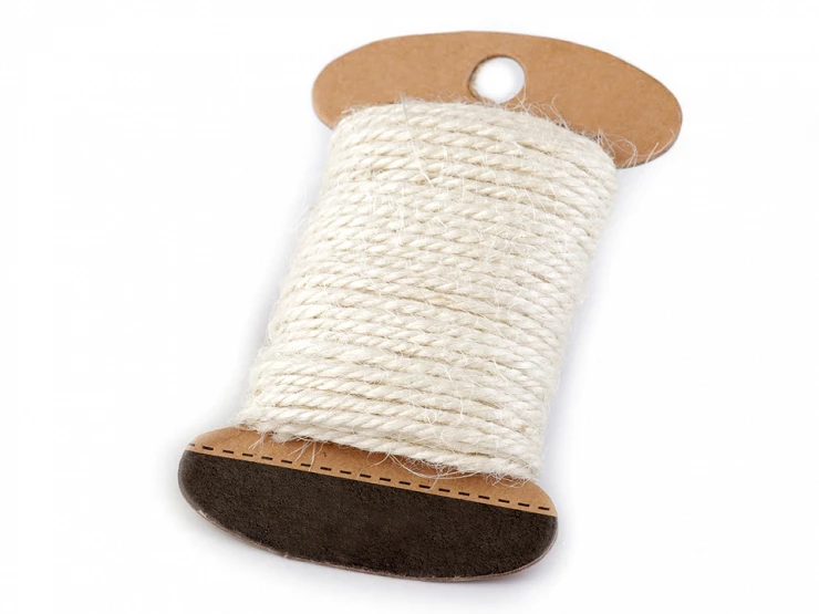 Přírodní jutový provázek je pevný a spletený ze tří tenčích šňůr. Je skvělým pomocníkem ve floristice a jiných dekoračních technikách. Provázky jsou navinuty na papírových kartách.