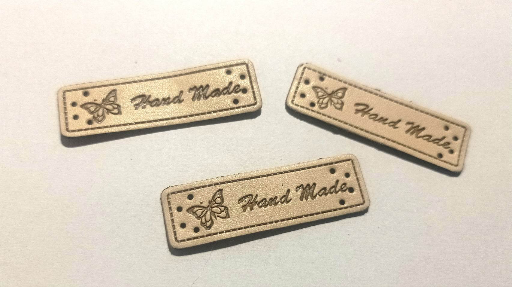 Koženkový štítek HAND MADE krémový
