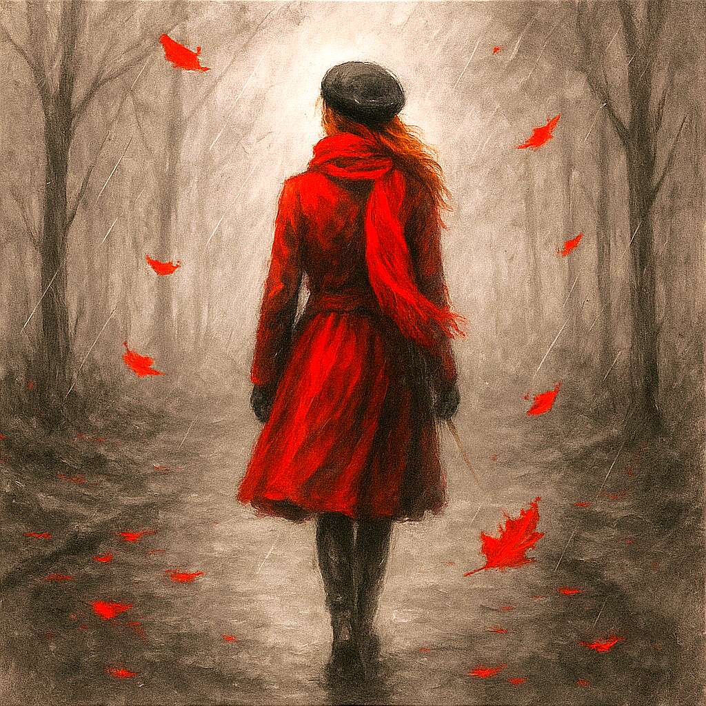 PANEL DÁMA V ČERVENÉM KABÁTKU