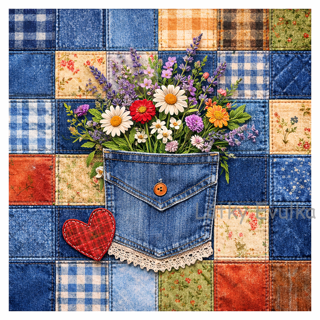 PANEL JEANS PATCHWORK LUČNÍ KVÍTÍ