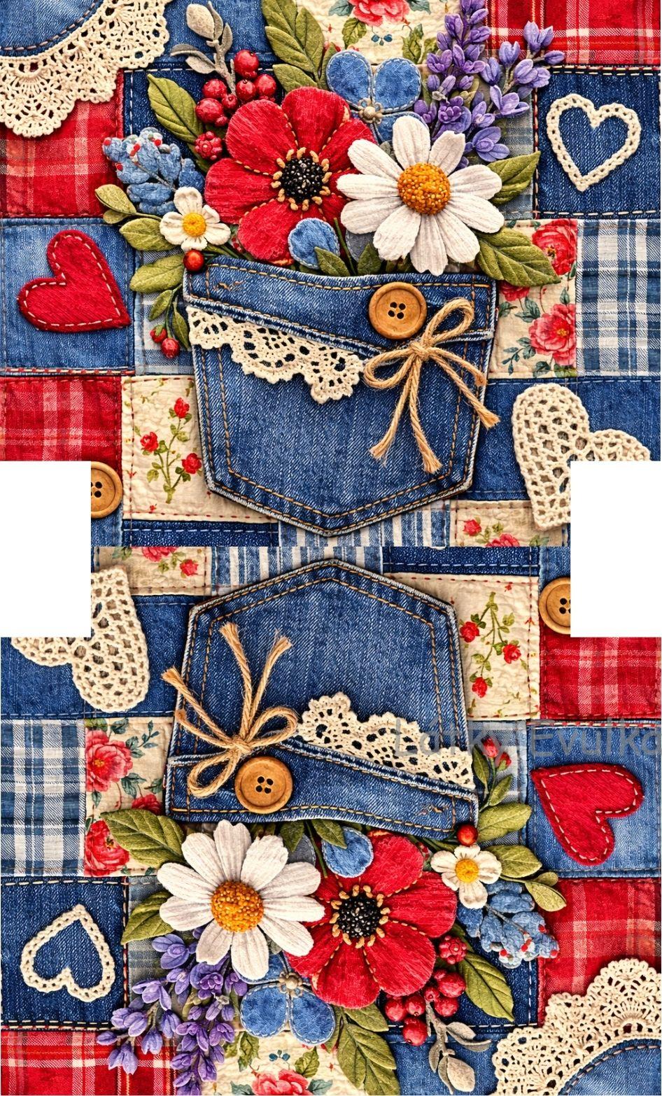 PANEL KOSMETICKÁ TAŠTIČKA – JEANS PATCHWORK KYTIČKY 2