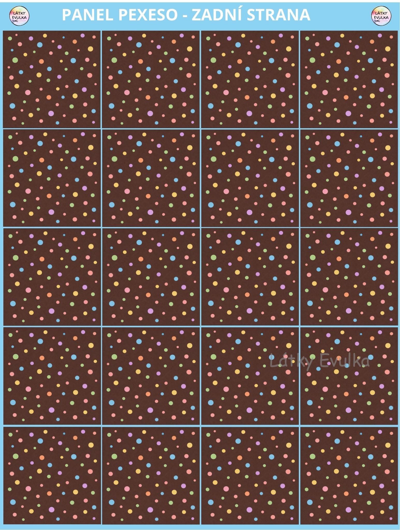 PANEL PEXESO – ZADNÍ STRANA – BAREVNÉ PUNTÍKY NA HNĚDÉ