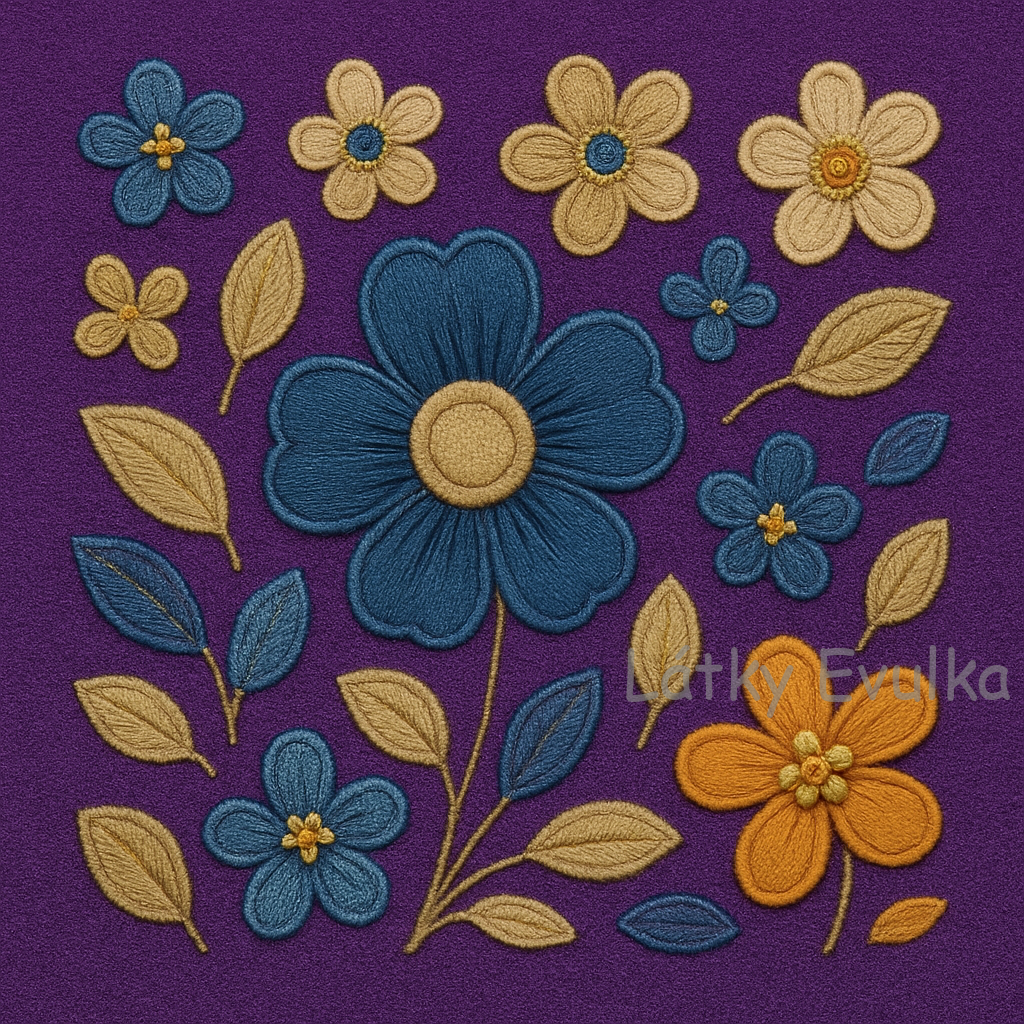 PANEL VYŠÍVANÉ JEANS KYTIČKY FIALOVÁ