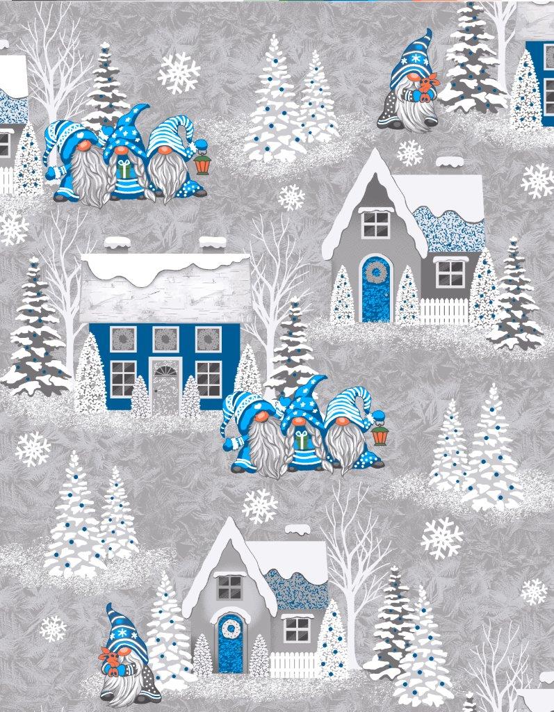 Vaflovina Skřítci a domečky modrá
